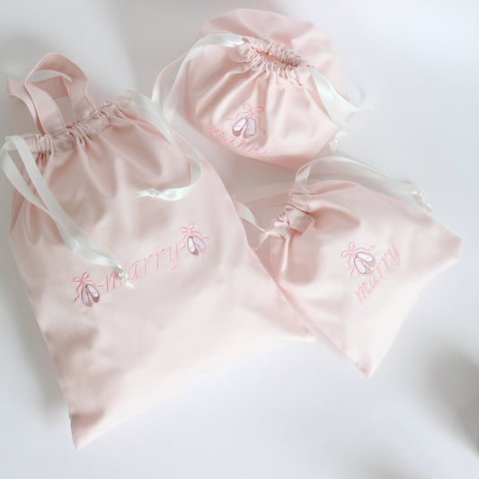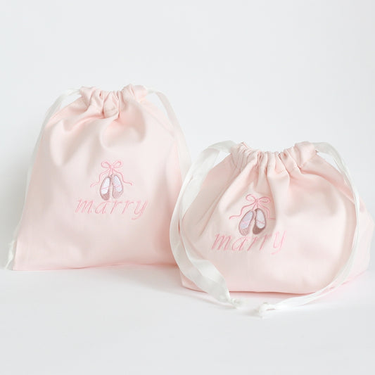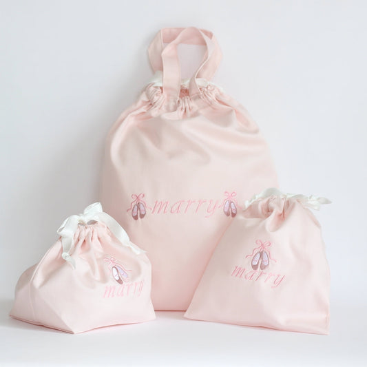 【トゥーシューズ+名入れ刺繍】巾着袋3種類セット(4色)