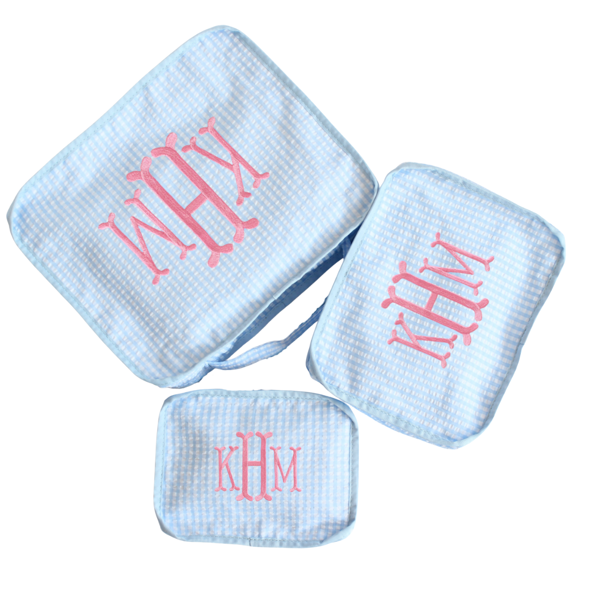 【選べるモノグラム】スタッキングポーチ3点セットBlue Check Seersucker