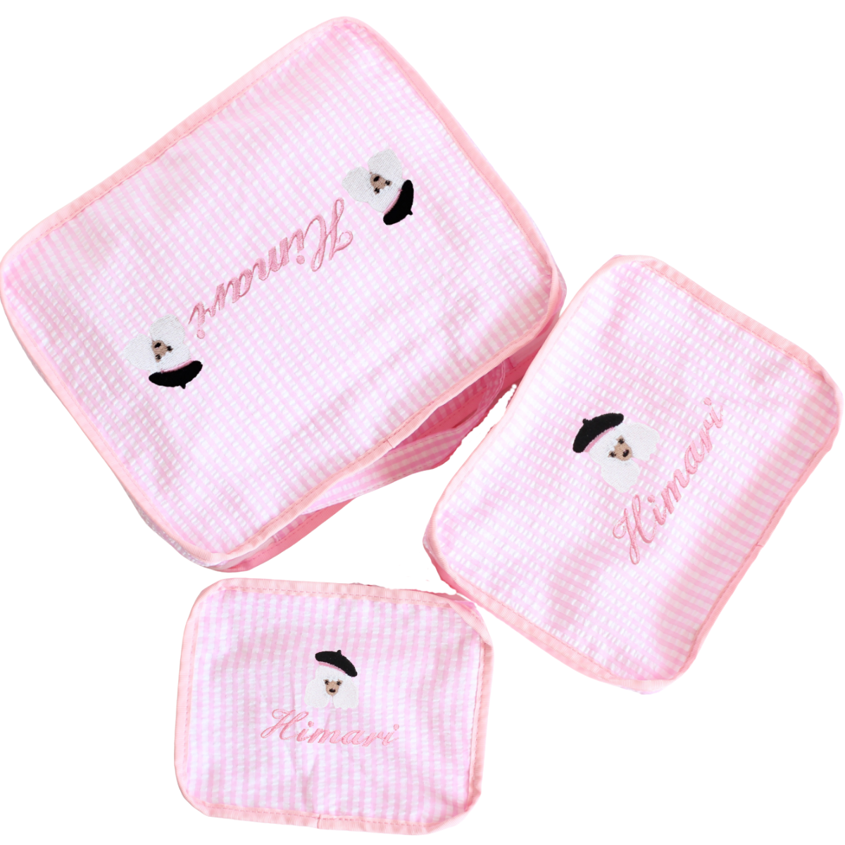 【選べるモチーフ】スタッキングポーチ3点セットPink Check Seersucker