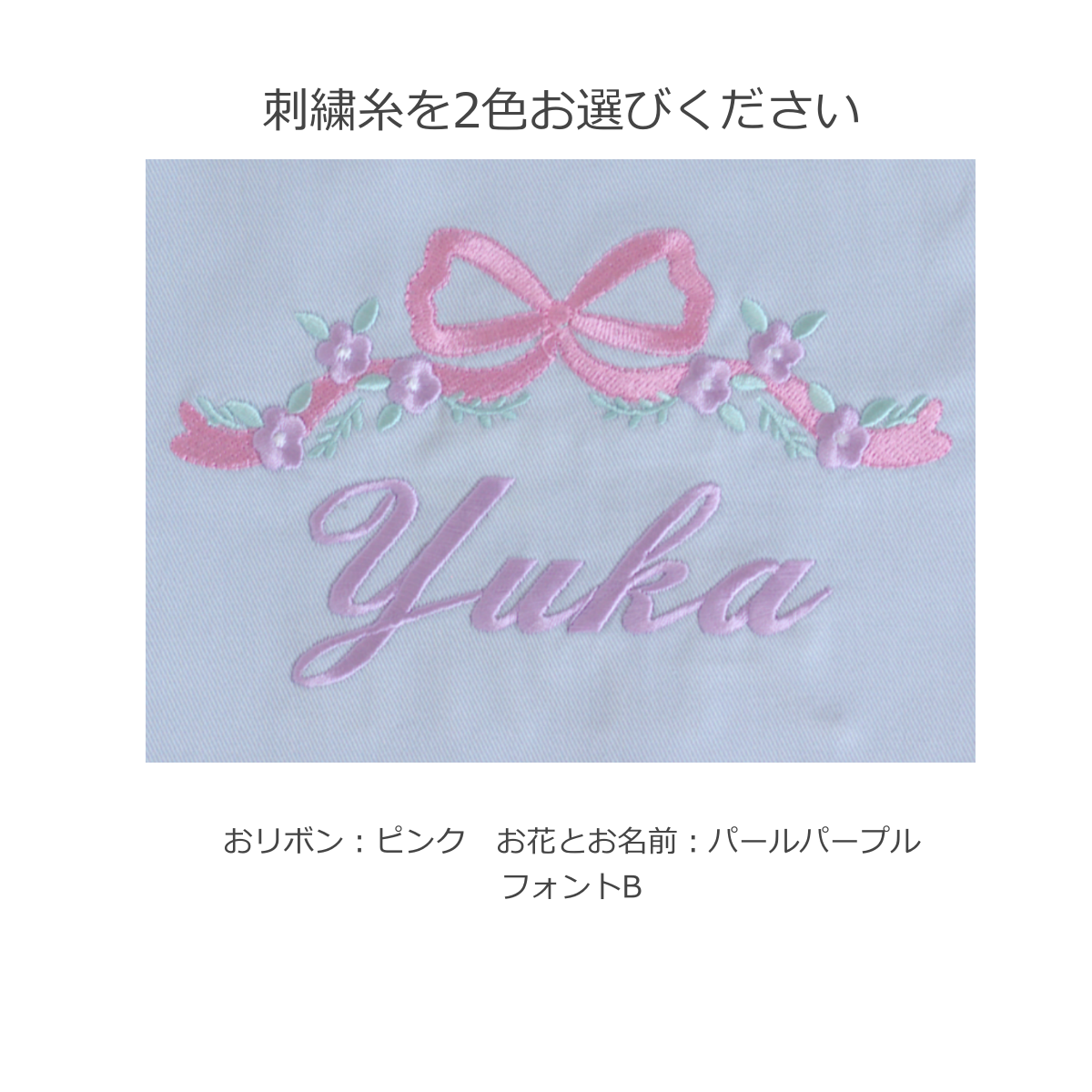 刺繍糸はおリボンで1色、お花とお名前で1色の2色をお選びください。