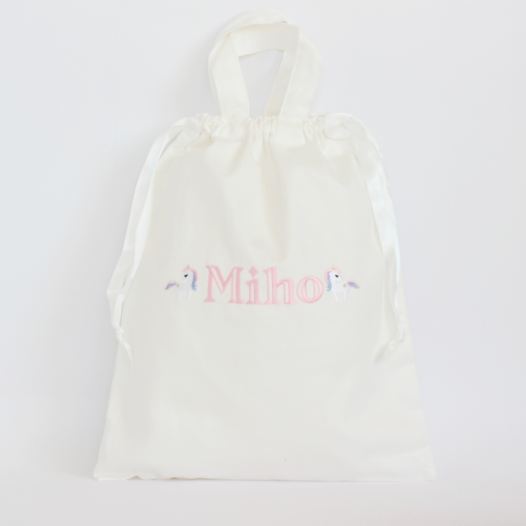 ユニコーンのお名前刺繍入り持ち手つきドローストリングバッグ